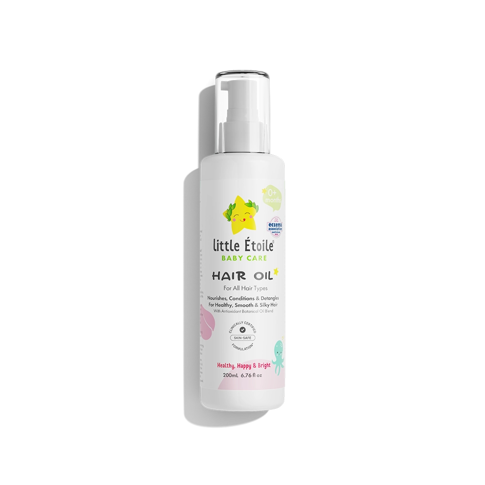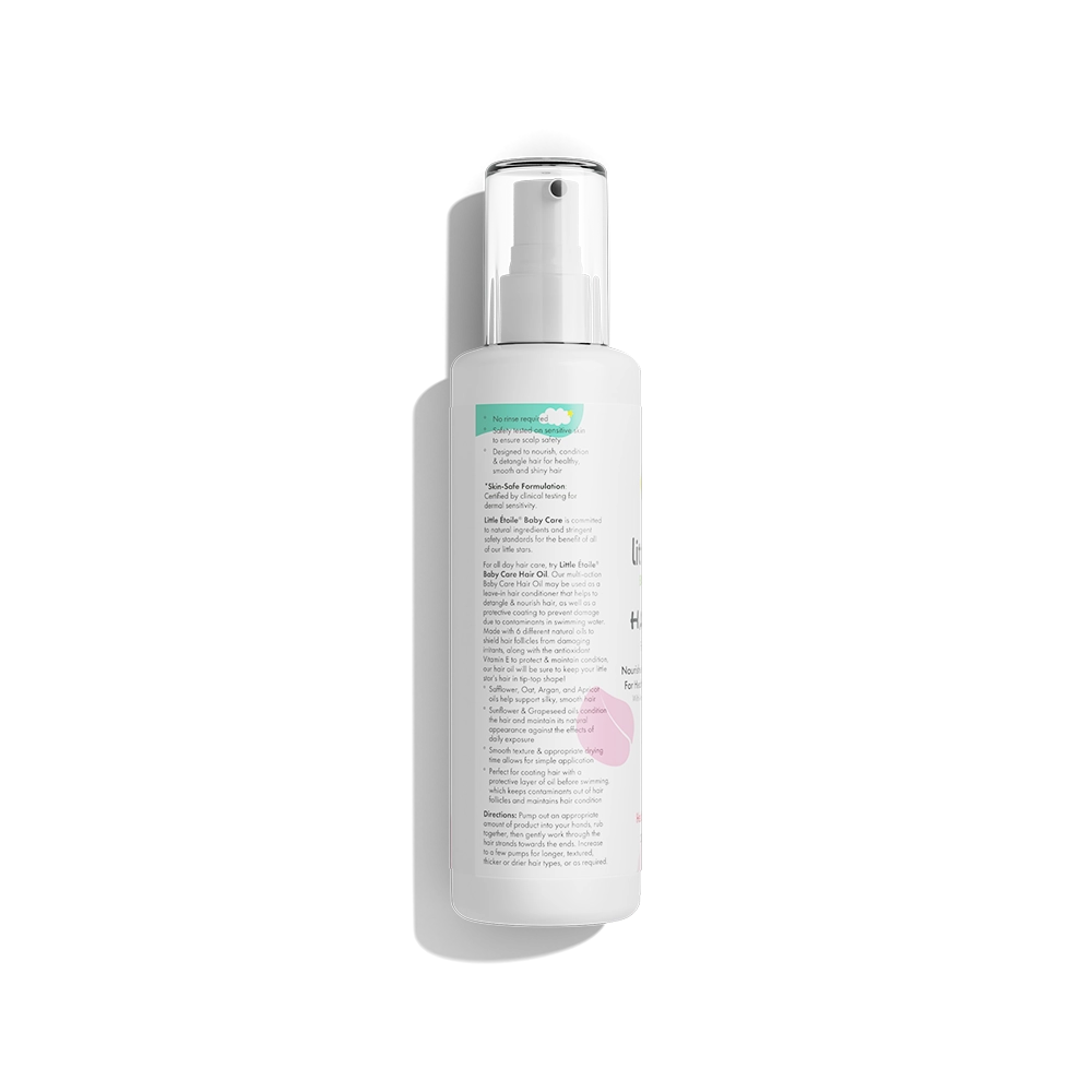 Our multi-action Baby Care Hair Oil nourishes and protects hair as it gently detangles, reducing dryness and static. Lovingly crafted to help your little stars shine from the top down!