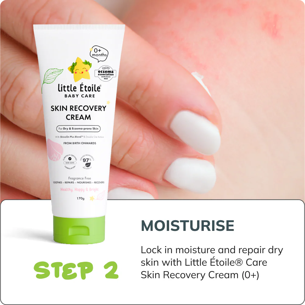 Dry skin, itchy skin, irritated spots?? In the first two years of life, children are prone to such skin issues as their skin develops its protective outer layers. Our Little Étoile® Baby Care Skin Recovery Cream is a rich, intensive formulation designed to rehydrate and relieve irritation while reinforcing skin hydration & softness.