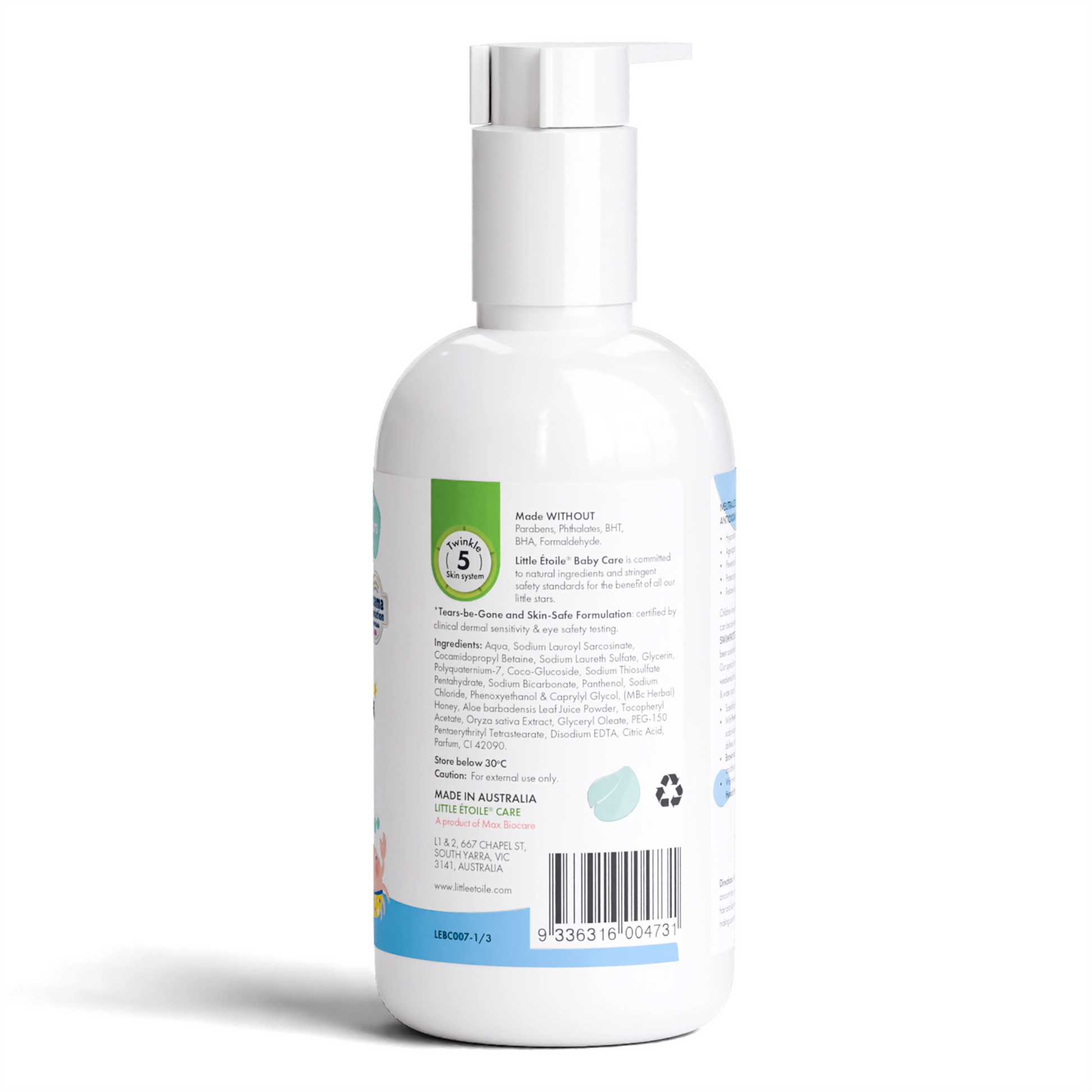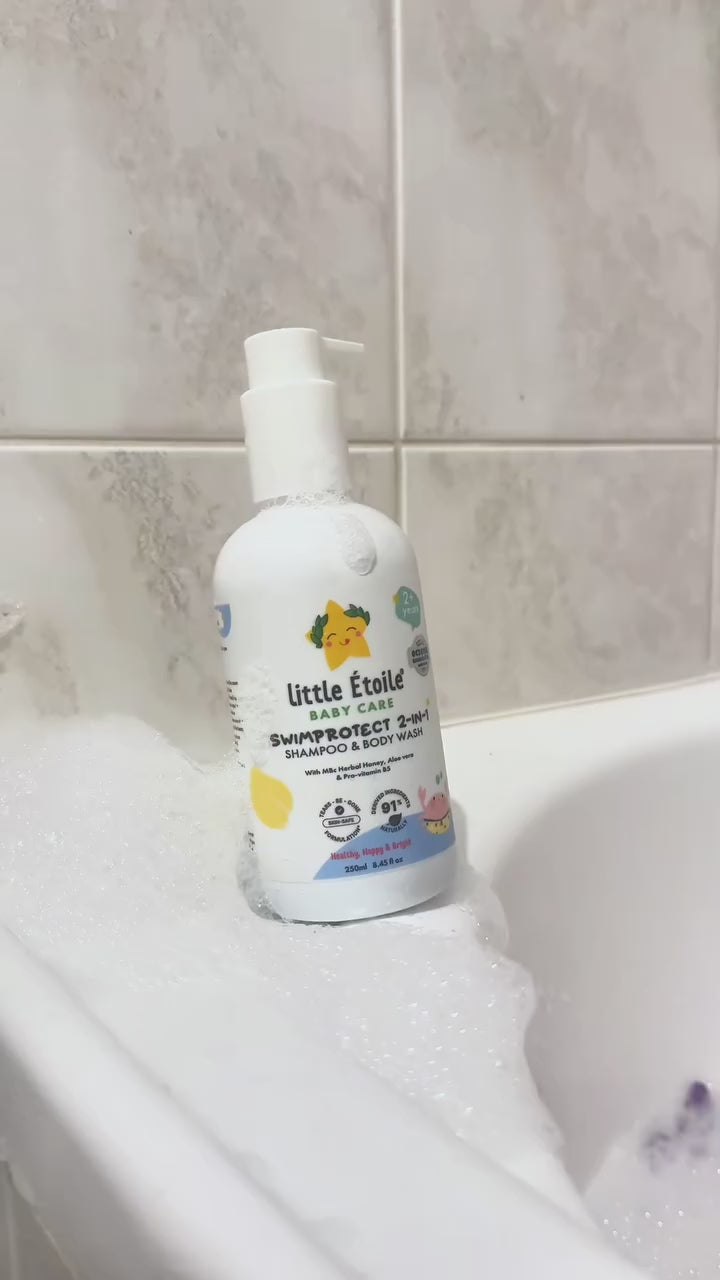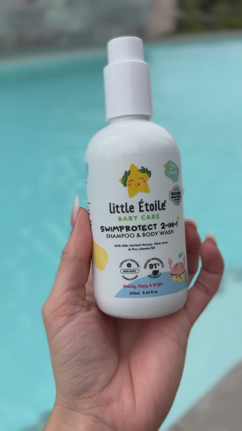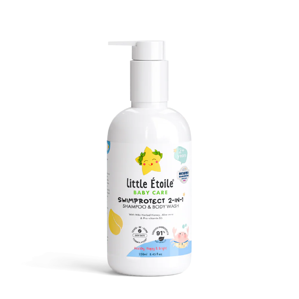 Little Étoile® Care SwimProtect 2-In-1 was found to be safe for sensitive skin in a study performed by an accredited dermatology clinic on 54 Australian subjects. It showed no signs of skin irritation (dermatologist’s score of 0/4) on upper arm skin after 24 hrs of exposure.