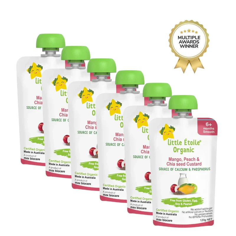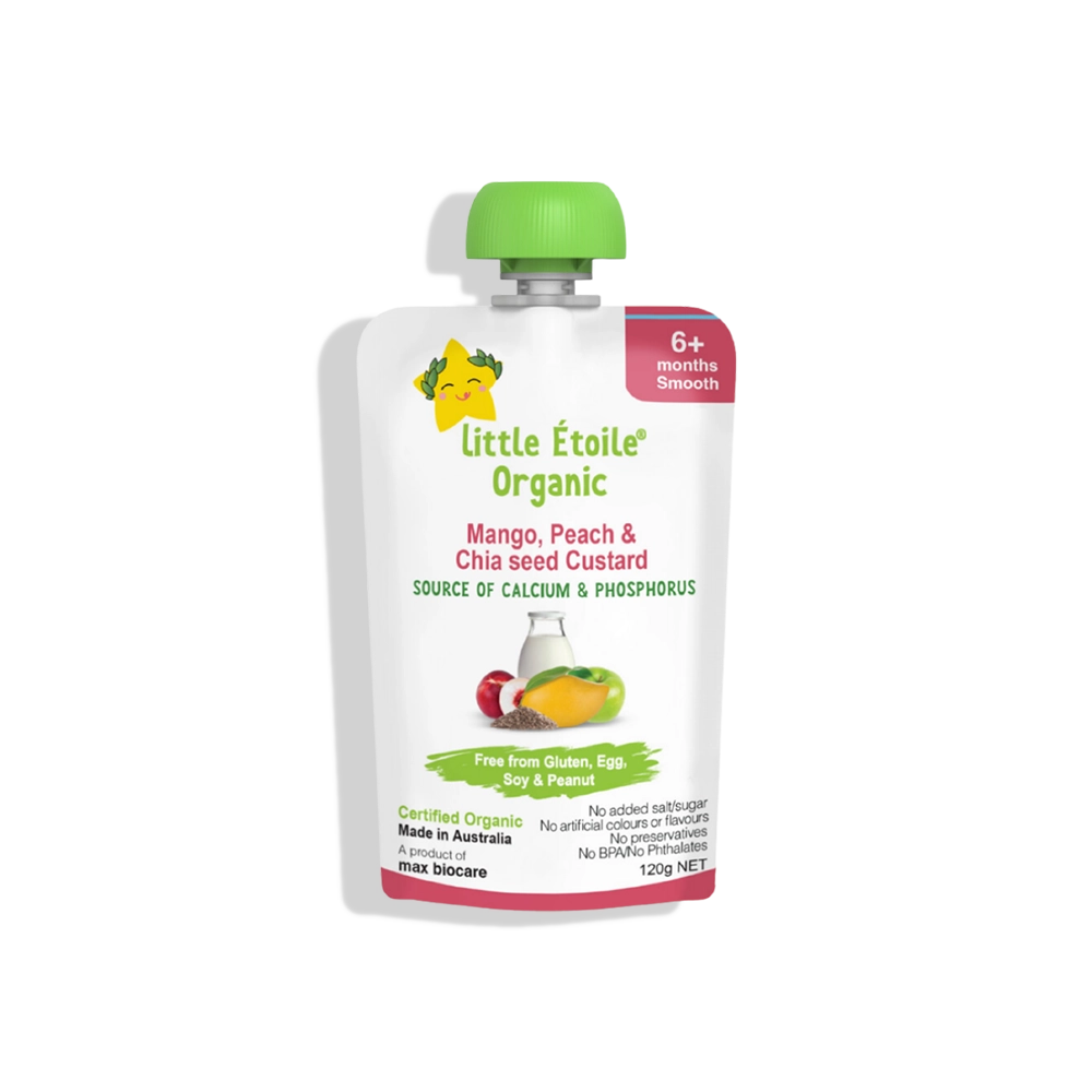 Made using fresh organic milk and blended with the goodness of mango, peach and chia seeds. Providing a source of calcium and phosphorus and with no added sugar, this yummy and nutritious custard will be loved equally by both mum and bub!