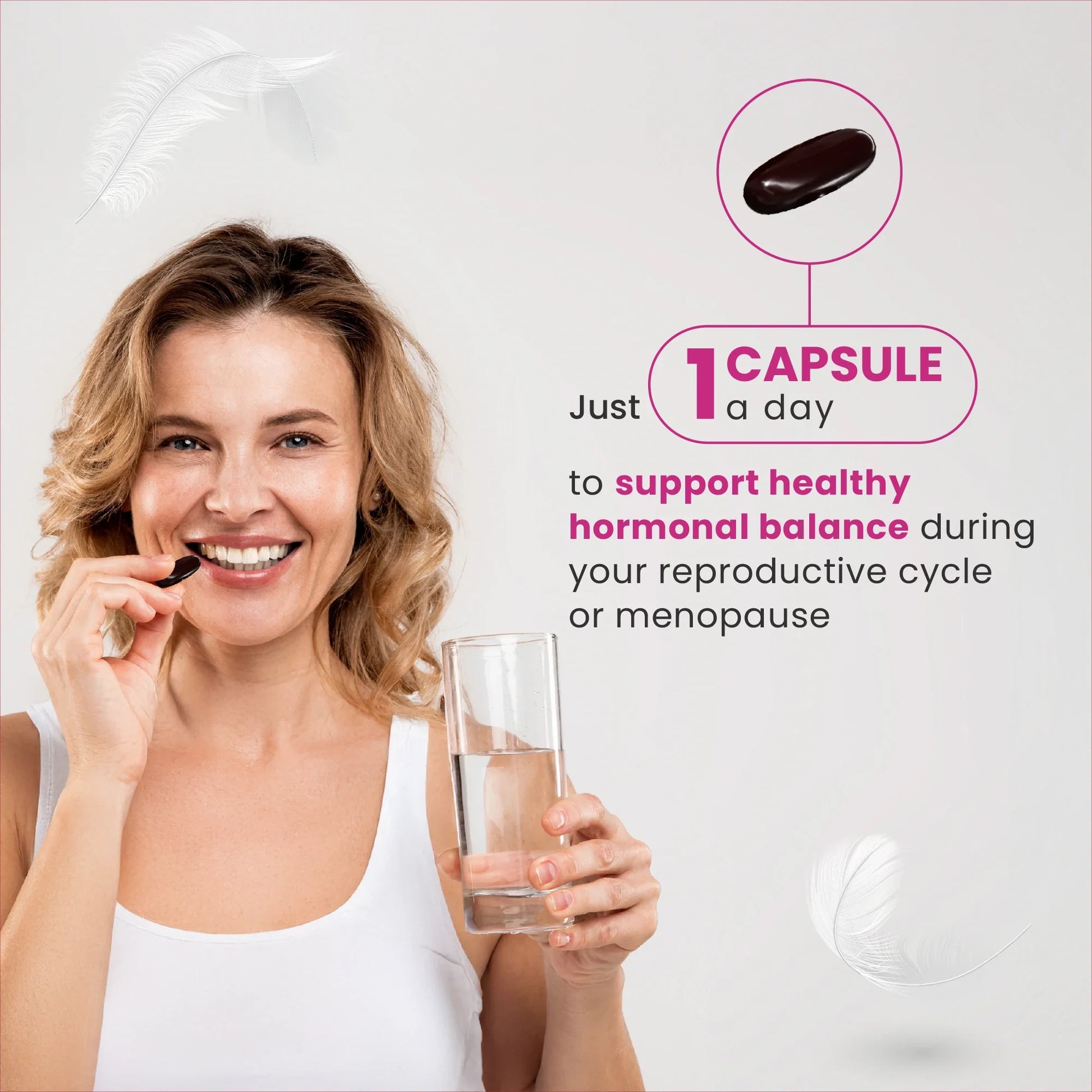 - Supports female healthy hormonal balance during the reproductive cycle and menopause