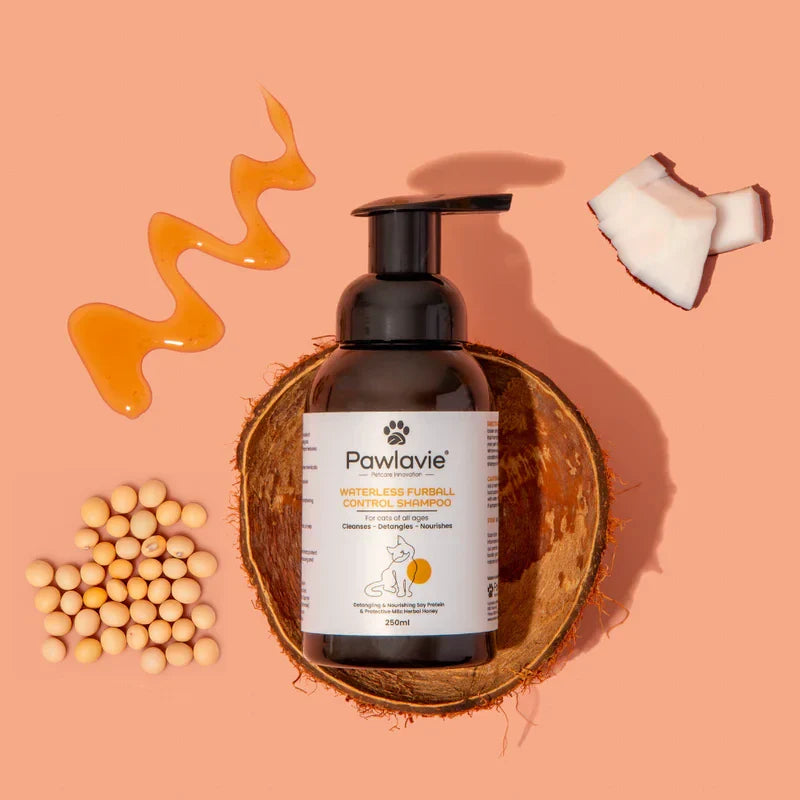 Self-grooming, particularly when shedding, will cause cats to ingest excessive amounts of loose fur, leading to furballs. Our Waterless Furball Control Shampoo helps to reduce furballs by strengthening the fur and detangling knots, minimising the amount of fur cats can take in.