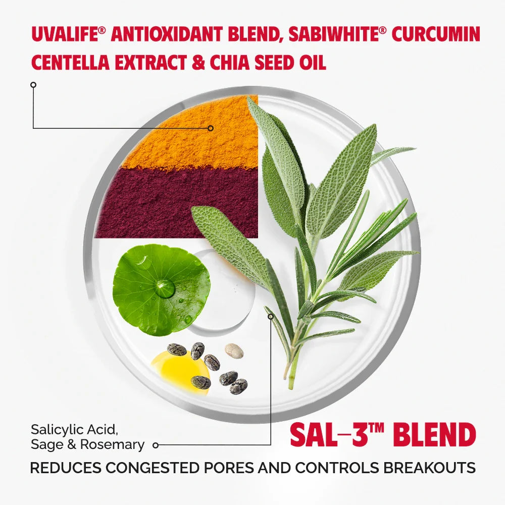 With Salicylic Acid (0.5%) and Sabiwhite®, it helps unclog pores and visibly even the complexion. Botanical actives offer comfort and care, while antioxidants like Uvalife®, MBc Herbal Honey, and Vitamin E help support your skin’s natural defenses—so skin stays smooth, balanced, and resilient.
