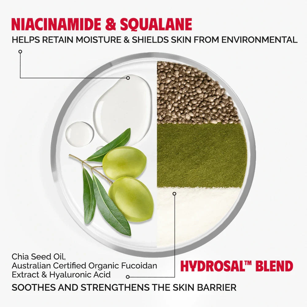 Rehydrates and locks in moisture, strengthens the skin barrier, calms and soothes skin, offers antioxidant protection |